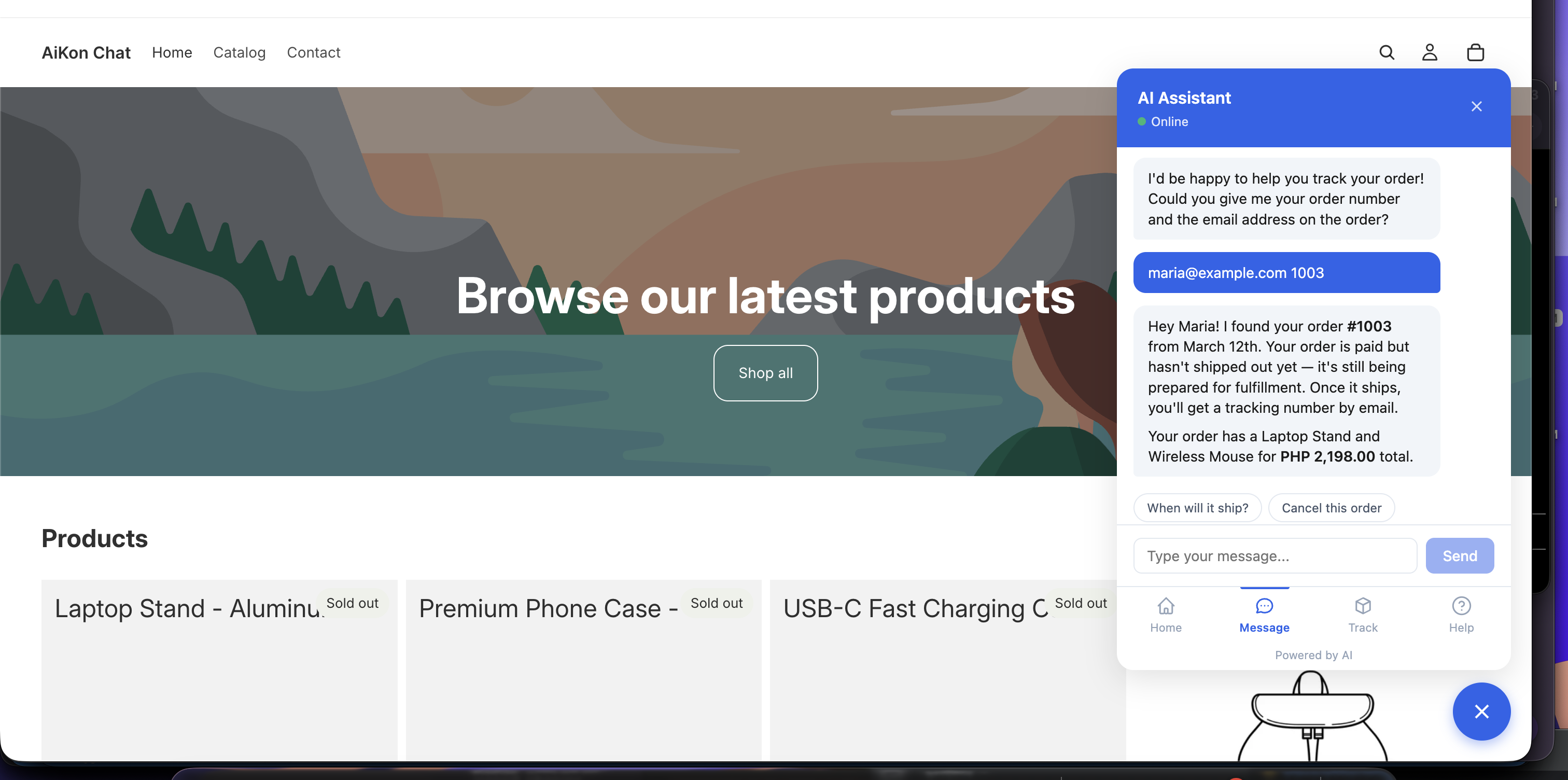 AiKon is an AI agent that plugs into your store, learns your business, and handles customer conversations — instantly, 24/7.